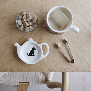 A fabulous tea bag dish for all dog lovers. Different breeds available - more to follow Presented in its very own kraft gift box to make the perfect present.Made from sturdy earthenware.Dishwasher safeWidth: 13cm Height: 10cm Depth: 2.5cm